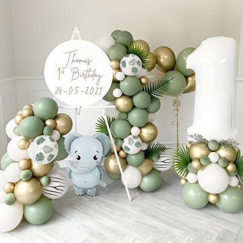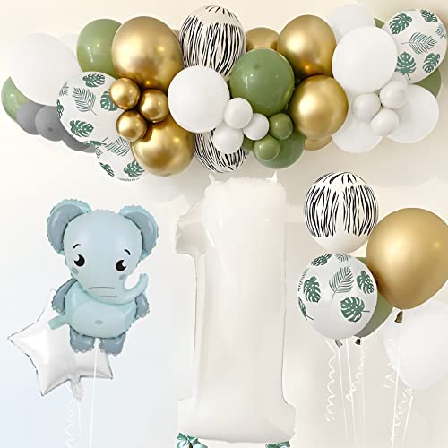 Palloncini Compleanno 1 Anno Giungla, Thinbal Compleanno 1 Anno Bimbo, Decorazioni Compleanno 1 Anno Safari con Elefante Palloncini Bianchi Grigi Verdi, 40in Numero 1° per Primo Compleanno Bimbo Bimba