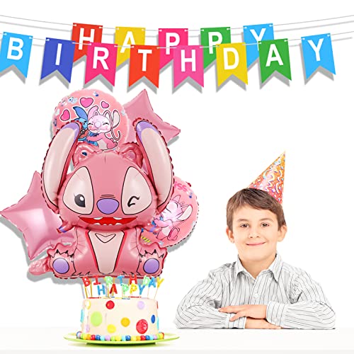 【Lilo Sti-tch Party Set】Decorazioni per il compleanno dei bambini Ci sono 1*palloncino lettera buon compleanno, 2*palloncino stella rosa, 2*palloncino cartone animato rotondo, 1*palloncino modello St-itch.