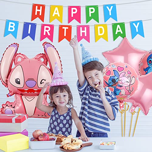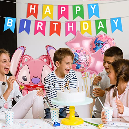Set di palloncini per il compleanno di Lilo Sti-tch,6 pezzi di palloncini in foil per bambini,set di accessori per feste,striscione di compleanno, palloncini di compleanno per bambini e ragazze
