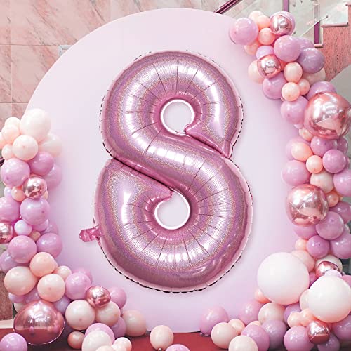 Palloncini Compleanno, Numeri Enormi Palloncini a elio- Decorazioni Compleanno Palloncino Numero 8 Rosa - Vola con l'Elio