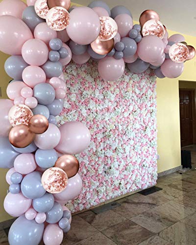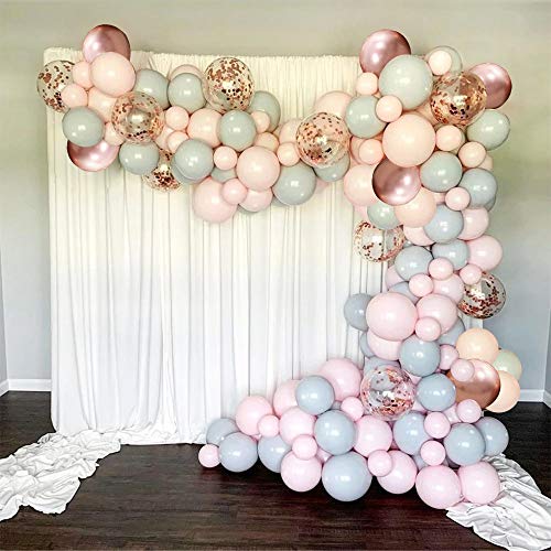 【Ghirlanda di palloncini fantasia】: questo kit di ghirlande di palloncini include 90 palloncini in lattice, tra cui rosa macaron, grigio macaron e oro rosa, 1 rotolo di nastro adesivo da 16 piedi e 100 punti di colla.