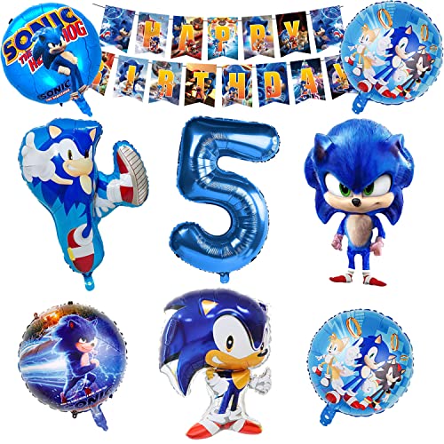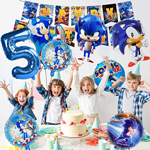 Palloncini Compleanno di Sonic: tra cui N. 5 Balloon x1, palloncino in alluminio rotondo in alluminio x4, Palloncino Alluminio Sonic x3, un happy birthday banner x1. Questa decorazione di festa di compleanno sonora è molto adatta alla festa a tema di tuo figlio.