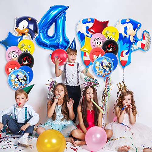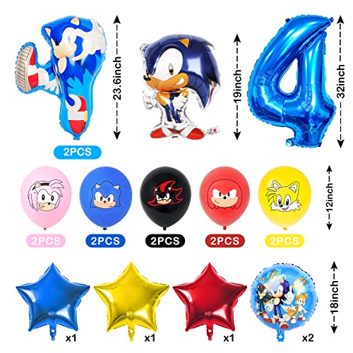 Palloncini di Compleanno di Sonic,Palloncini in Foil per Bambini, Accessori per feste di Compleanno per Bambini,Palloncino Gigante Numero 4,per Bambine Ragazzi 4 anni Decorazione Palloncini per Feste