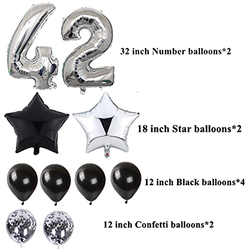42. Palloncini decorativi per compleanni, 42 anni, per uomini, colore nero e argento, 42° compleanno, per 42° compleanno, decorazione per festa di compleanno, 42° compleanno