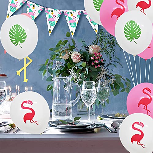 Palloncini Fenicottero - simyron 50Pezzi Fenicottero Decorazione Compleanno, Hawaii Decorazioni Tema per Ragazze Donne, per Attività All'aperto Compleanno Bambini-Rosa/Bianco