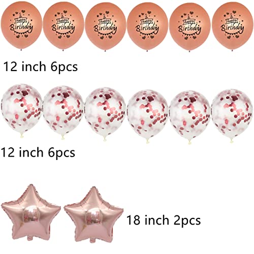 Dimensioni: numero di palloncini: circa 100 cm. Palloncino a elio a forma di stella, circa 18 pollici, colore oro rosa, palloncini in lattice/coriandoli: il diametro di un palloncino gonfiato è di circa 30 cm.