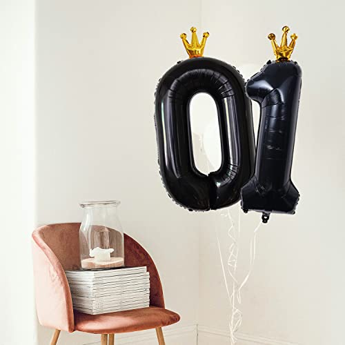 101,6 cm Palloncini a Forma di Numero con Corona, Palloncini Foil Numeri e 73 cm Grande Corona d'Oro Numeri di Palloncini di Elio per Compleanni Festa Celebrazione Decorazione (Nero, 0)
