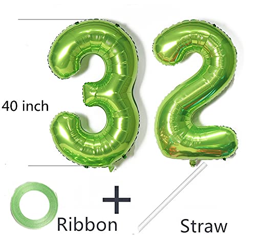 2 palloncini a forma di numero 32 verde + ghirlanda di auguri + banner verde in pellicola 32. Decorazione di compleanno per uomini e donne 32 anni di compleanno, decorazione con numeri