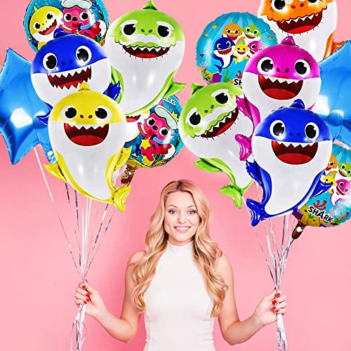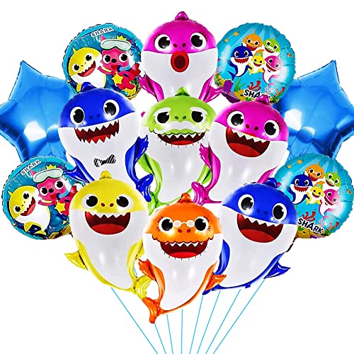 Palloncini a forma di squalo, 13 pezzi, in pellicola di alluminio, per compleanni, animali marini, decorazioni per feste a tema di compleanno