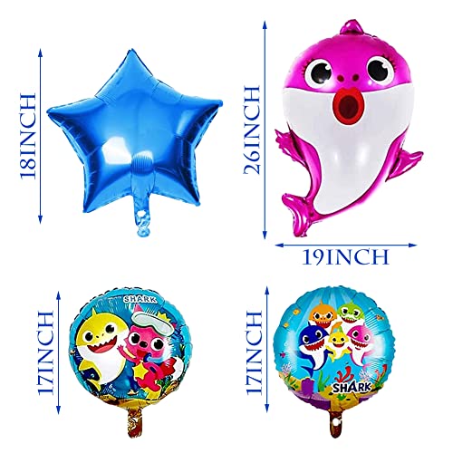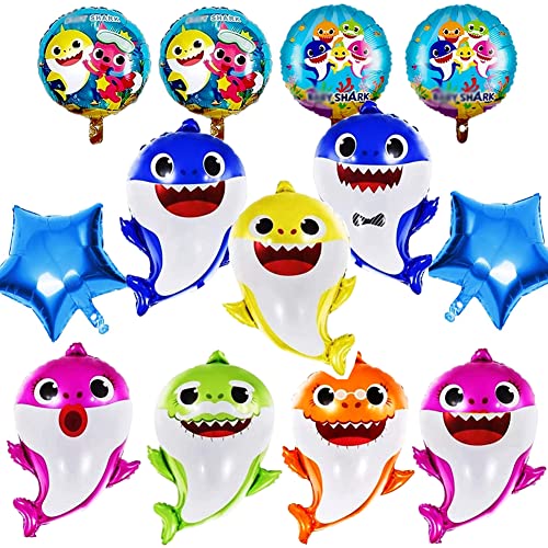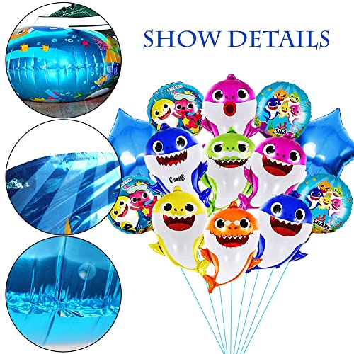 Contenuto della confezione: 13 palloncini in alluminio hain, inclusi 4 palloncini rotondi a forma di squalo, 7 palloncini a forma di squalo (7 modelli, 5 colori), 2 palloncini a forma di stella blu in alluminio