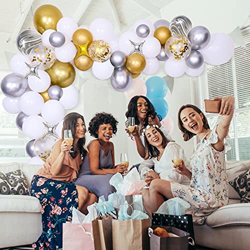 Palloncini Kit Ghirlanda Arco, 81Pezzi Oro Bianco Palloncini Kit Ghirlanda Arco, Argento Palloncini Coriandoli Oro Palloncini per Feste di Compleanno, Decorazioni per Feste di Nozze