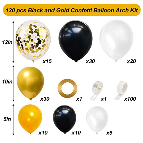 120 PCS Palloncini Kit Ghirlanda Arco Palloncini Nero Bianchi Metallizzato Confetti Palloncini e 3D Decorazione per Ragazze Ragazzo Festa Compleanno, Matrimonio, Anniversario, Baby Shower