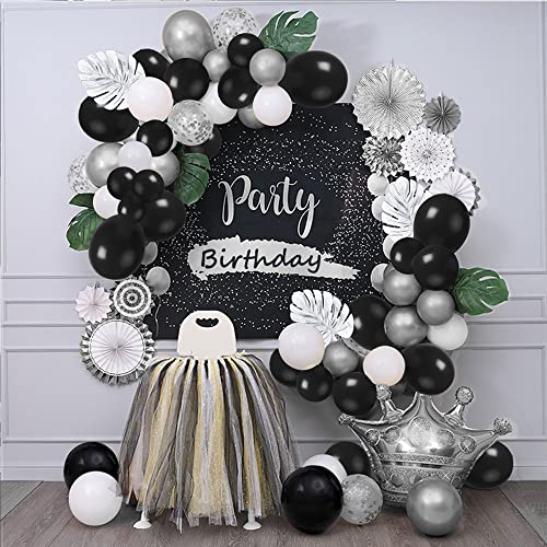 Palloncini Ghirlanda Arco Kit Nero Bianco Argento, Palloncino Decorazione Feste Ad Arco con Palloncini Argento Metallizzato, Bianco, Nero e Coriandoli Foglie di palma Compleanno, Matrimonio, Laurea