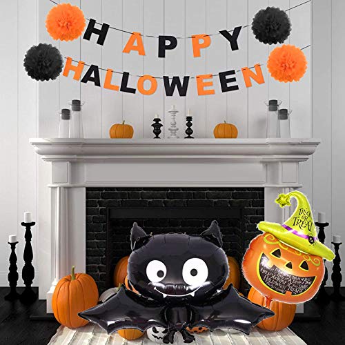 Kit di Palloncini di Halloween,Decorazione Halloween Palloncini, Foto Booth Props Halloween,Palloncino in Lattice,Palloncino Foil,Zucca Palloncini,Feste per Halloween Festival Fantasma (Arancio nero)