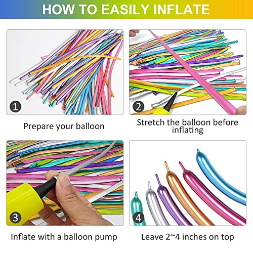 Kit Palloncini Lunghi Metallici 260 con Pompa, Palloncini Attorcigliati in Lattice Cromo Lucido per Animali Palloncino, Palloncini Magici per Compleanni Anniversari di Matrimonio Decorazioni