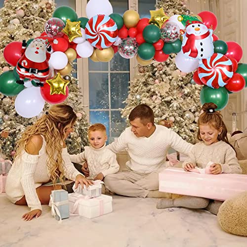 93 palloncini natalizi con ghirlanda ad arco e palloncini, in lattice, colore rosso, verde, bianco, palloncini in oro metallizzato, Babbo Natale, pupazzo di neve, caramelle di Natale