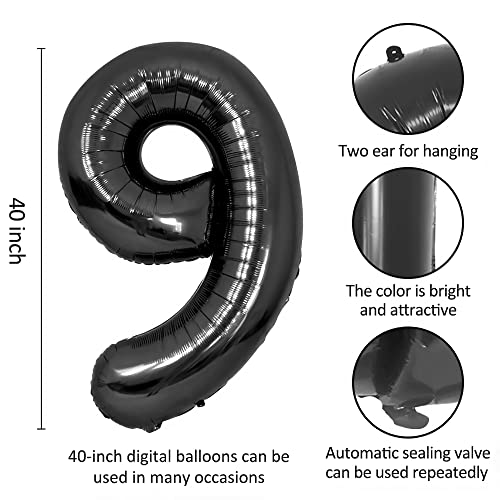Palloncini con numeri neri Unisun, Palloncino digitale a 9 fogli grandi da 40 pollici per forniture per feste di anniversario di compleanno (numero nero 9)