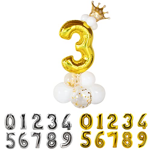 Palloncini numero 3 oro compleanno Bambina Bambino Ragazzi Adulti Kit Decorazioni Completo Palloncino anni Set 12 Palloncini Corona Decorazioni Compleanno Addobbi Compleanno Bambina Bambino Festa