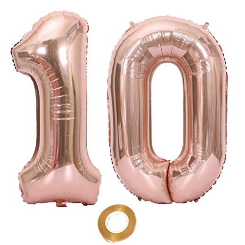 Palloncini Numero 10, Palloncino 10 Ragazze Oro Rosa Palloncini 10° Compleanno Pallone Foil Deco 10 Palloncini Oro Rosa Grande 32 Pollici Pallone Foil Elio Gigante 10°Compleanno Ragazze(10)