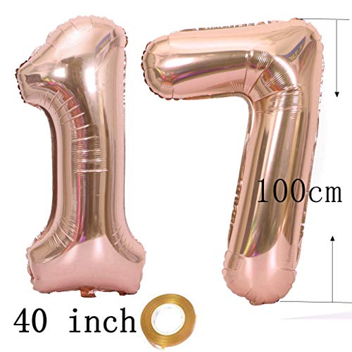 Palloncini Numero 17, Palloncino Numero 17 Oro Rosa Ragazze Palloncini 17° Compleanno Palloncino in Foil, Numero 17 Oro Rosa Numero 17 Palloncini Grandi, 40 Pollici Pallone gigante in Foil Elio 17