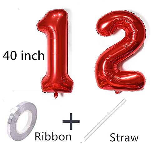 Palloncini numero 12, palloncino numero 12 rosso palloncini 12 compleanno ragazze deco palloncino foil 12 numero palloncini 12 rosso XXXL 40" pallone gonfiabile gigante ad elio 12 anni compleanno