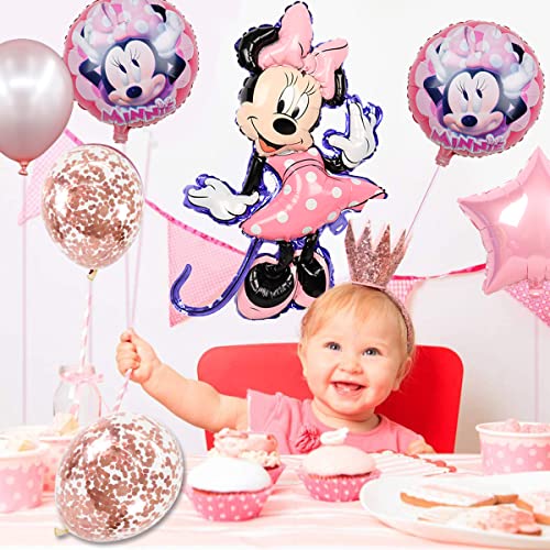 Palloncini Party Minnie - simyron Decorazioni di Compleanno di Minnie Palloncino Compleanno Articoli per Feste Palloncino Pellicola di Alluminio per Baby Shower Decorazione 8pcs(Rosa Chiaro)