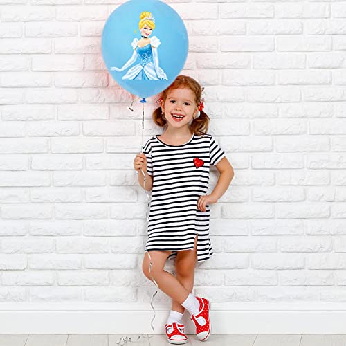 Riceverai: Cake topper, Palloncini Principesse(Nella confezione sono inclusi palloncini in lattice nei colori blu, rosa e giallo. Stampati con diversi motivi delle principesse.), Banner, Ciondoli a Spirale. Set 50 Palloncini Principesse