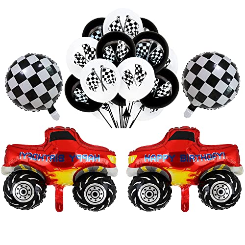 Qualità premium: i palloncini Monstertruck e i palloncini a quadretti in bianco e nero sono realizzati in materiale in lamina di alluminio, mentre i palloncini con bandiera sono in lattice, il materiale è stato rigorosamente selezionato, durevole, colorato ed ecologico.