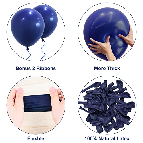 I palloncini sono preferiti: i palloncini colorati possono essere riempiti con aria, elio o acqua. I palloncini blu notte con 2 nastri possono creare la ghirlanda di palloncini con kit arco a palloncino (non incluso), migliorare l'atmosfera felice della festa. Utilizzali per bomboniere, decorazioni per palloncini, baby shower, feste di carnevale, ritorno a casa, decorazioni per la casa, Capodanno, addio al nubilato, occasioni speciali e così via.