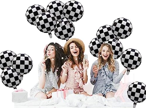 16 palloncini a scacchi bianchi e neri da 45,7 cm palloncini per auto a quadri palloncini per auto da corsa forniture per feste di compleanno auto da corsa decorazioni per feste auto palloncini grandi