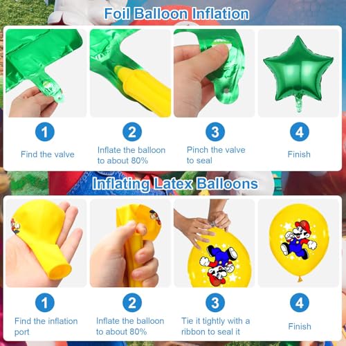 【Materiali di alta qualità】i palloncini Super Mari sono realizzati in foil e lattice di alta qualità, lo striscione Happy Birthday e le decorazioni per torta sono realizzati in cartoncino di alta qualità da 300g, non tossico, resistente e riutilizzabile. Nota: si consiglia di gonfiare i palloncini a circa l'80% per evitare che scoppino a causa del gonfiaggio eccessivo.