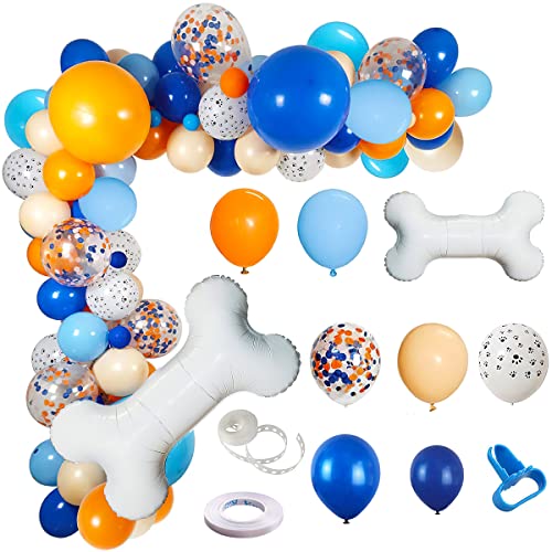 Palloncini a Tema Cane, XiXiRan 117 Palloncini Arancioni e Blu Arco Palloncino, Set di Decorazioni di Compleanno di Palloncini in Lattice Con Corda a Palloncino, Annodatore