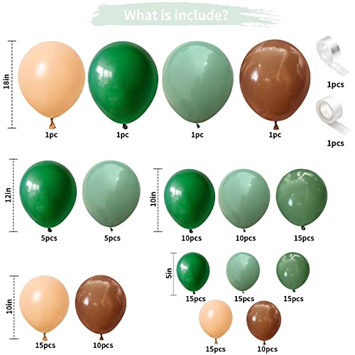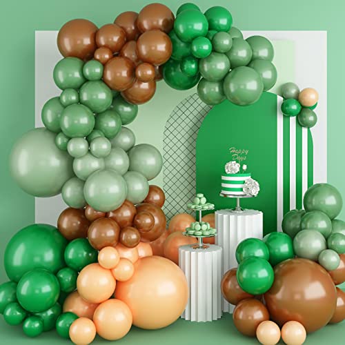 Kit di 146 palloncini verde salvia, verde oliva, marrone scuro, marrone chiaro, lattice opaco, palloncini di diverse dimensioni per palloncini giungla, decorazioni per feste di compleanno per ragazzi
