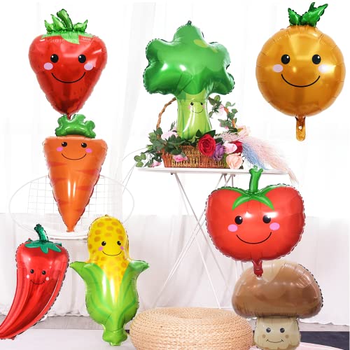 Decorazione per feste di verdure: il set di palloncini vegetali contiene 8 palloncini di alluminio vegetale tra cui peperoni, fragole, carote, broccoli, mais, funghi, pomodori e patate. Questi bellissimi palloncini vegetali ti regaleranno una festa meravigliosa e indimenticabile.