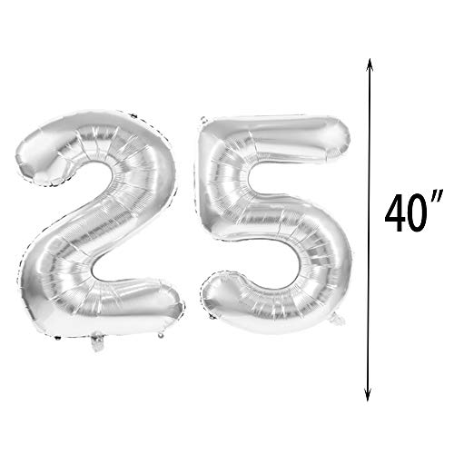 Palloncini in Mylar con numero 25: possono essere utilizzati per matrimoni, anniversari, feste, compleanni, feste di laurea, anniversario, matrimonio, matrimonio, anniversario, festa e altre decorazioni per feste di anniversario. Adatto per tutte le esigenze di palloncini posto