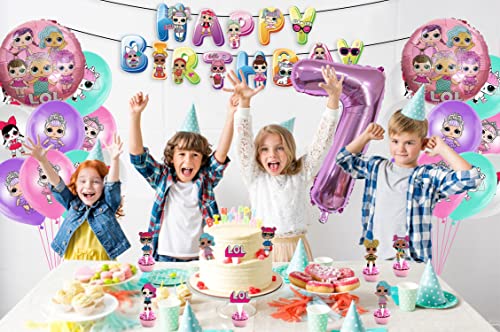 Palloncino, Decorazioni per Feste di Compleanno Surprise Doll 45 pcs, Palloncino Numero 7, Striscione di Buon Compleanno, Cake Topper, Torta Decorazione, Decorazioni per Feste a Tema