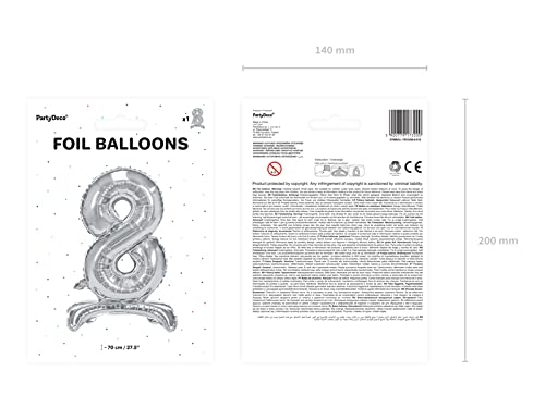 Palloncino Foil Mylar con Base Numero 8 Argento 70 cm