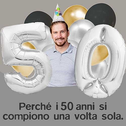 Palloncini gonfiabili per il 50° compleanno: Set di 2 palloncini in titanio e argento. XXL 40” (101 cm). Lavorazione di alta qualità, per belle feste di compleanno e anniversari. Palloncino di compleanno adatto per uomo e donna.