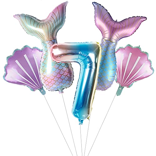 Palloncino a forma di sirena, per bambine 7 anni, colorato, per compleanno, decorazione per bambine, con conchiglia a sirena, palloncino per 7° compleanno, decorazione per la sirena