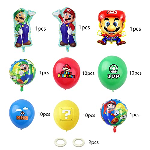 Palloncino Mario Bros Foil,45 Pezzi Palloncini Mario Bros Compleanno,Kit Compleanno Mario Bros,Mario Bros Palloncini,Kit Festa Mario Bros per Bambini Decorazione del Partito Forniture