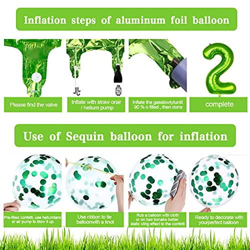Palloncino Numero 2 Dinosauri, Decorazioni Compleanno 2 Anno, Foil Palloncini Numeri 2 Verde, Palloncini 2 Compleanno Ragazzo per Dinosauri Bambini Festa nella Giungla