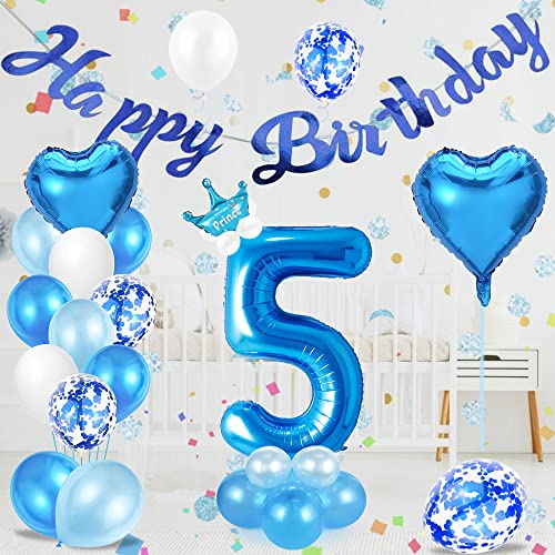 Blu Palloncino Numero 5 Ragazzo, 5 Compleanno Decorazioni, Foil Palloncini Numeri 5 Blu, Decorazione Festa di Compleanno per Bambini Blu, 5 Anno Anniversario Decorazioni Festa Compleanno Ragazzo