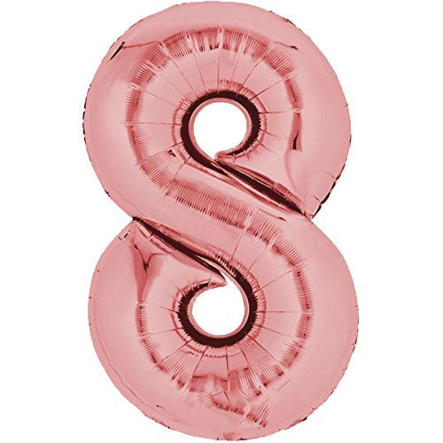Top Ten Palloncino in pellicola da 80 cm, colore oro rosa, con numeri, per compleanno, numero adatto per elio e gonfiaggio ad aria (numero: 8)