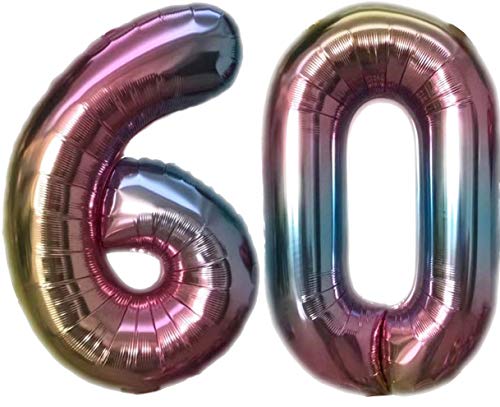 Palloncino in pellicola, numero 60, colorato, XL, altezza circa 72 cm, per feste di compleanno, anniversario o altre occasioni festive (numero 60)