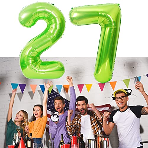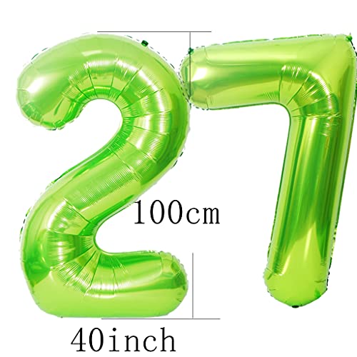 Palloncino da 40 pollici con numero 27 compleanno uomo donna verde + 4 palloncini in pellicola, XXL con numeri 27 elio verde per compleanno, decorazione numero 27 palloncino verde per 27 compleanno