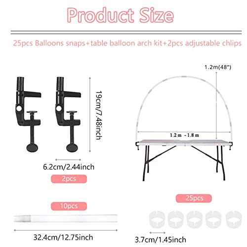 Dimensioni regolabili: L'arco a palloncino da tavolo è molto flessibile. Il supporto da tavolo è adatto per la maggior parte dei tavoli in commercio. L'altezza e la larghezza dipendono dalle dimensioni del tuo tavolo. L'altezza e la larghezza dell'arco possono essere regolate regolando la distanza tra le basi.