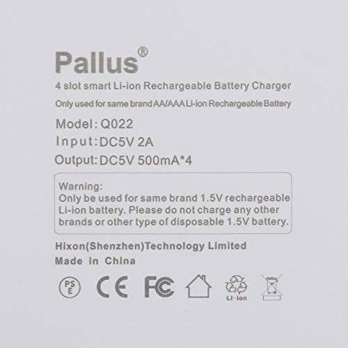 Pallus Caricabatteria AA AAA per batteria ricaricabile agli ioni di litio 4 slot indipendenti caricabatterie con un cavo USB