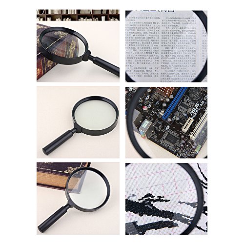 Handheld magnifier ideale per stretta ispezione di oggetti come mappa, circuiti stampati, segni distintivi, timbri, collezionisti di monete, visualizzazione di piccoli dettagli in libri, giornali, riviste, mappe, elettronica, Miniature, porta pillole, gioielli, hobby e artigianato.