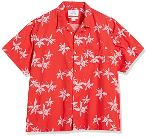 28 Palms Relaxed-Fit 100% Cotton Tropical Hawaiian Shirt Camicia Che Si abbottona, Red/White Floral, S