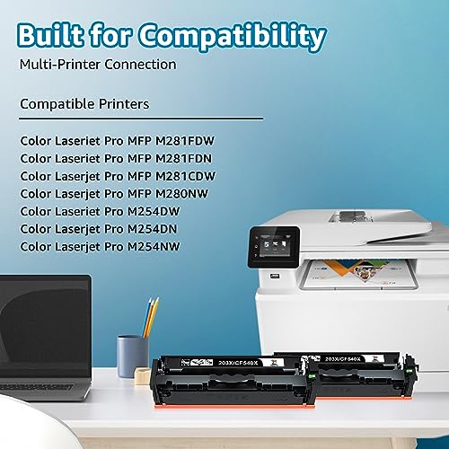 Palmtree 203X Toner Compatibile per HP 203X 203A CF540X CF540A per HP Color Laserjet Pro MFP M281fdw M281fdn M280nw HP Color Laserjet Pro M254dw M254nw M254dn M254 M281 (Nero, 2-Pack)